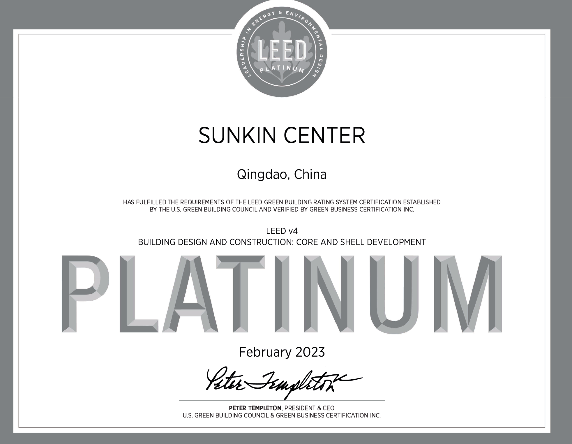鑫江中心榮獲綠色建筑“奧斯卡”LEED鉑金級認證