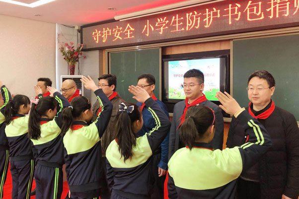 隨后,中國紅十字基金會,學生安全防護書包項目負責人,孫淺先生,向孩子們耐心的講解了安全防護書包的功能及使用方法。據悉,安全防護書包,采用全功統一的環保材料制作而成,環保健康;書包表面,使用360°交通反光材料進行處理,不管是在清晨、傍晚還是有霧的天氣,反光材料都能有效地反射來自孩子周圍車輛發出的光線,提醒司機,注意避讓,以保證孩子的安全;書包夾層內還進行了防溺水處理,經漂浮測試,書包可在水中承擔起一個成人的體重;同時,書包內更做了安全示警裝置,必要情況,孩子可通過使用哨子,發出求救信號,提醒周圍人注意。這些功能的設計,有效的保證了孩子上下學路上的安全。