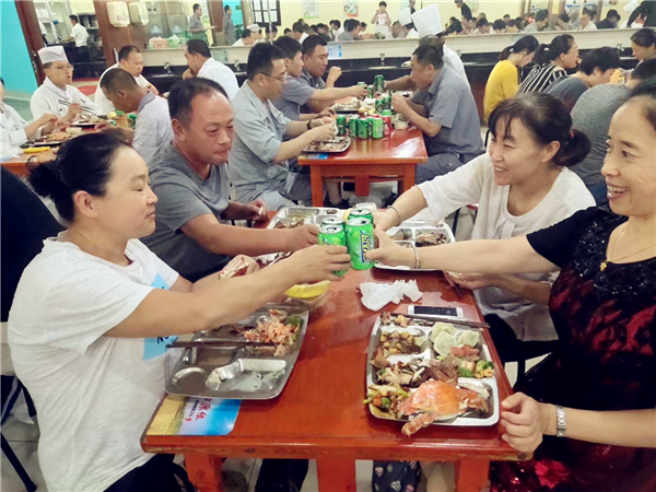 公司領導特意安排包括螃蟹、大蝦、餃子、各種飲料等在內的豐盛的午餐晚餐,增強了大家對企業的認同感、歸屬感。