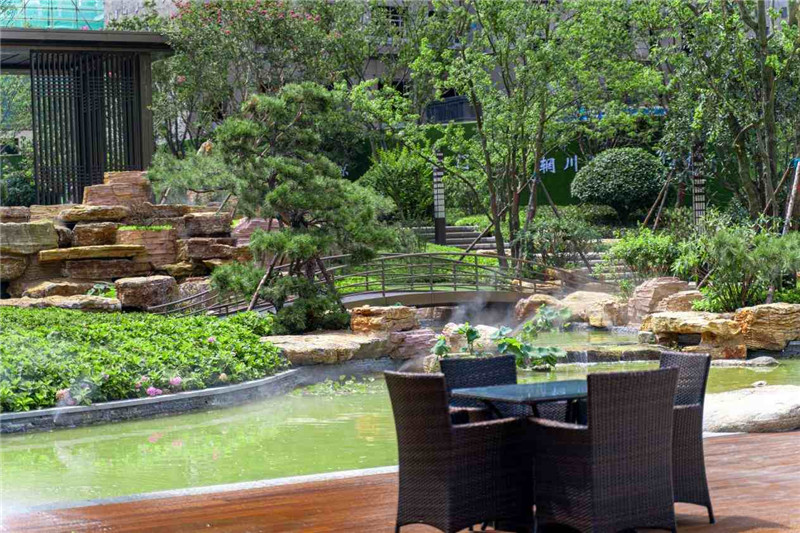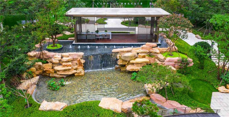 傳承宋代美學與現代建筑精髓,鑫江·瑞府將人文底蘊與現代國際審美潮流深度融合,形成獨樹一幟的“鑫派園林”。多維立體水系,打造山泉——石灘——清溪——疊瀑——歆湖等形態更加豐富的水景,詮釋真正的自然之美;高綠植量覆蓋,烏桕、紫薇、泰山松等名貴苗木全冠移植,一院擁攬春華秋實;遵循古法匠制,尋品質上乘泰山石,超30年經驗匠人指導堆砌,營造更加純粹的中式園林。