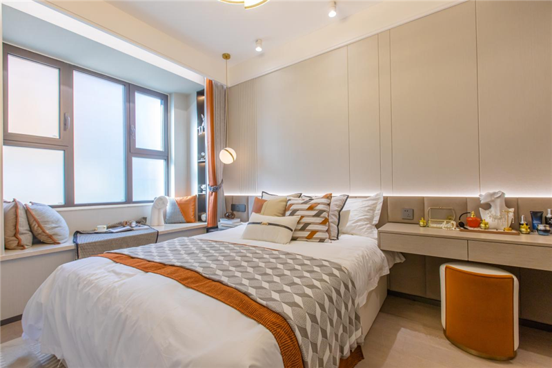 屬于主人房的私密浪漫中,空間是奇妙的催化劑,南側(cè)寬景飄窗,升級(jí)視覺(jué)維度與空間質(zhì)感,午后小憩、閱讀瞰景,自此就有了專屬的一席,女主人專屬衣飾區(qū),滿足自我的時(shí)尚與倉(cāng)儲(chǔ),隨心而居,時(shí)光靜好,勾勒理想生活的模樣。