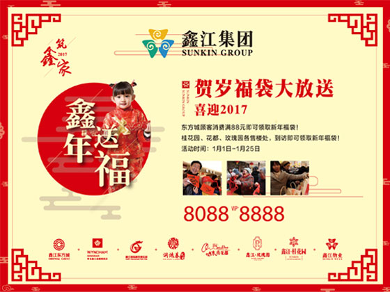 1月1日-1月25日,三種方式免費領取鑫江集團新年福袋,內含紅包5個、福字2個、對聯1副;