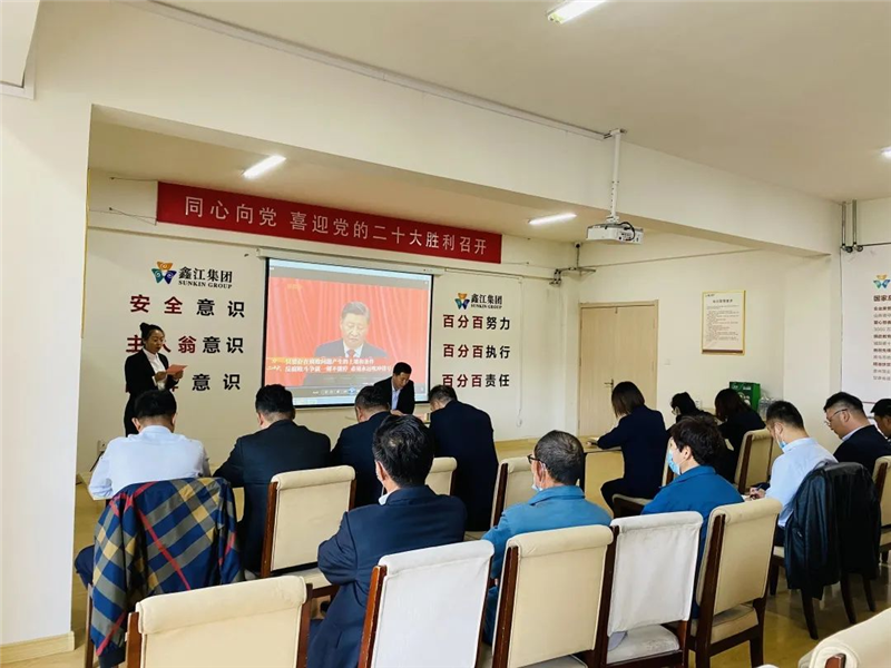 鑫江集團(tuán)高度重視黨的二十大精神學(xué)習(xí)宣傳貫徹工作,集團(tuán)黨支部和工會(huì)通過周密的安排,在集團(tuán)及各個(gè)分公司組織黨員職工干部及廣大員工收看黨的二十大開幕會(huì)。